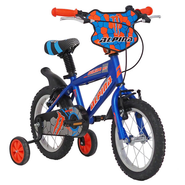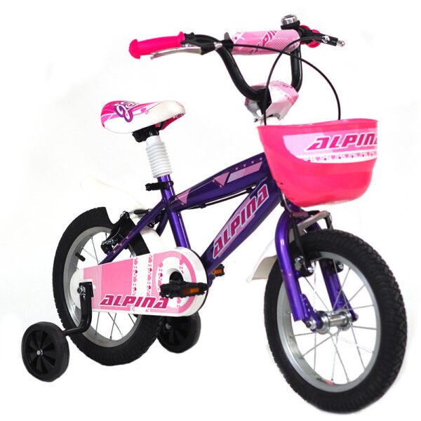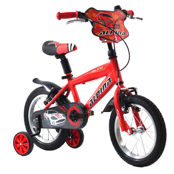 Παιδικό ποδήλατο Alpina Beleno VB 14'' για παιδιά ηλικίας 3-5 ετών (90-110 εκ) με ενισχυμένες βοηθητικές ρόδες ώστε να νιώθουν περισσότερη άνεση και ασφάλεια καθώς αρχίζουν να μαθαίνουν ισορροπία. Ο έξυπνος σχεδιασμός του καθιστά ιδιαίτερα ευχάριστη τη διαδικασία εκμάθησης ποδηλάτου για τους μικρούς μας αναβάτες ενισχύοντας την αυτοπεποίθησή τους.