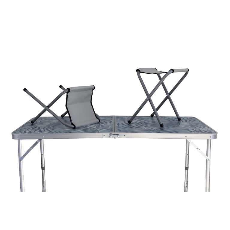 Το σετ τραπέζι και καρέκλες ST01-B από την INCA είναι μια εξαιρετική λύση για όποιον εκτιμά τις πρακτικές λύσεις για καλοκαιρινά πικνίκ ή οικογενειακά ταξίδια σε κάμπινγκ. Το κιτ ST01-Bπεριλαμβάνει ένα πτυσσόμενο τραπέζι και τέσσερις συμπαγείς καρέκλες. Η επιφάνεια τραπεζιού προσφέρει μιαρύθμιση ύψους τριών επιπέδωνπου επιτρέπει στον χρήστη να τον προσαρμόσει στις ατομικές του ανάγκες. Λειτουργεί καλά τόσο για παιδιά όσο και για ενήλικες! Αυτό το μοναδικό τραπέζι είναι κατασκευασμένο από υψηλής ποιότητας υλικά. Η συμπαγής δομή αλουμινίου και το επάνω μέρος από MDF εξασφαλίζουν σταθερότητα και χαμηλό βάρος του ίδιου του προϊόντος. Επιπλέον, η διαδικασία ξεδιπλώματος του τραπεζιού και των καρεκλών είναι πολύ απλή. Το ST01-Bδιπλώνει σαν βαλίτσα. Οι καρέκλες αποθηκεύονται μέσα στη βαλίτσα και η πλαϊνή λαβή σάς επιτρέπει να μεταφέρετε όλο το κιτ άνετα. ΧΑΡΑΚΤΗΡΙΣΤΙΚΑ Υλικό: σανίδα MDF, αλουμίνιο, πολυεστέρας Χρώμα της επιφάνειας τραπεζιού: Μπλε Βάρος του σετ με τη συσκευασία: 7,7 κιλά Διαστάσεις τραπεζιού: Πλάτος: 60 cm Ύψος: 55 ndash; 60 – 70 cm Μήκος: 120 cm Άνοιγμα ποδιών: 110 x 55 cm Διαστάσεις όταν είναι διπλωμένο: 60 x 60 x 6,5 εκ Διαστάσεις καρέκλας: Ύψος: 35 cm Πλάτος: 33 cm Βάθος: 28 cm Διαστάσεις καθίσματος: 27 x 25 cm