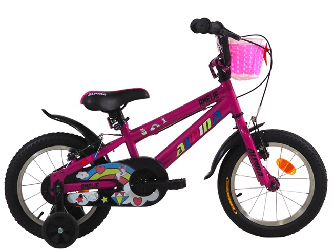 rnrnΠαιδικό ποδήλατο Alpina 14'' Amelie για παιδιά ηλικίας 3-5 ετών (90-110 εκ) με ενισχυμένες βοηθητικές ρόδες ώστε να νιώθουν περισσότερη άνεση και ασφάλεια καθώς αρχίζουν να μαθαίνουν ισορροπία. Ο έξυπνος σχεδιασμός του καθιστά ιδιαίτερα ευχάριστη τη διαδικασία εκμάθησης ποδηλάτου για τους μικρούς μας αναβάτες ενισχύοντας την αυτοπεποίθησή τους.